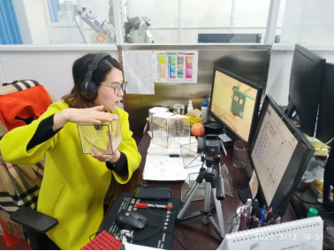 陳曦老師利用教學(xué)模型開展直播教學(xué)