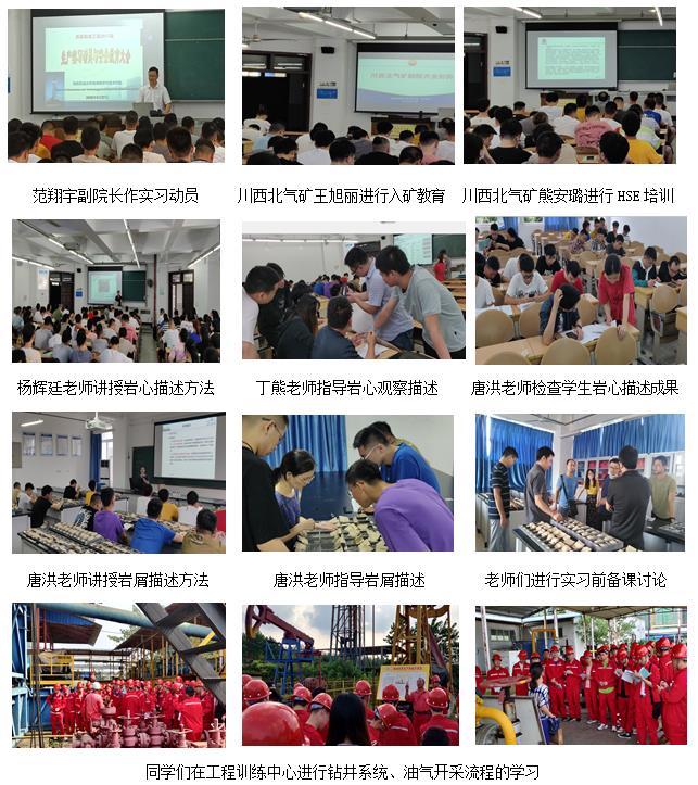 為確保新冠疫情防控期間資源勘查工程專業2017級生產實習的質量,地球科學與技術學院油氣地質教研室于2020年8月27—31日組織中石油川西北氣礦王旭麗、熊安璐、鄧清源3名兼職教師、學校工程訓練中心安先彬教師和教研室8名教師與142名學生開展5天線上線下相結合的生產實習。本次實習得到了學院領導的關懷重視,并在師生的共同努力下順利完成。