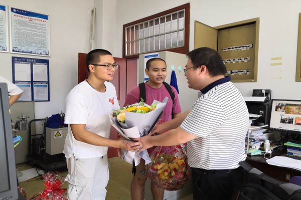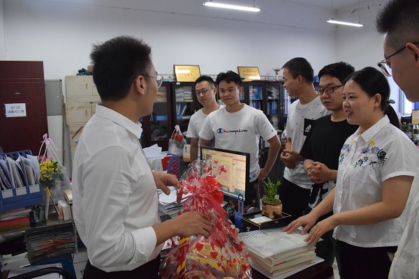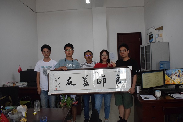 研會的倡議得到了同學們積極的響應和支持。明辨樓A區412教研室廖明光老師團隊的同學就在這次教師節給老師送出了別出心裁的禮物,一副裝裱好的用毛筆書寫的四個大字——“良師益友”,團隊成員楊飛同學表示:廖老師平時對待我們,在專業研究學習時就是最好的老師,在平時生活中是最好的朋友,這次我們就想到送老師一個不一樣的有心意的禮物,所以我們集思廣益,也就想到了寫這副字。字是師姐的父親親自寫的,然后一起拿出去裝裱,送出我們最大的心意。確實如此,“良師益友”四個大字表達出了老師與學生之間不可斬斷的親密聯系,一日為師,終身為父,研究團隊只有在一個良好的氛圍之中才會激發出最大的科研動力。廖老師的團隊是教師節學生對師長表達敬意的一個縮影。明辨樓D區408教研室、A區415教研室等諸多團隊的同學都在對老師表達著自己的心意,9月10日不僅僅是教師的節日,它更像是師生情誼的升華點,在這一天,老師與同學更像是朋友,敞開心扉無所不談,相信地科院的師生都會以美好的心情和對未來滿心的期待結束這特殊的一天。