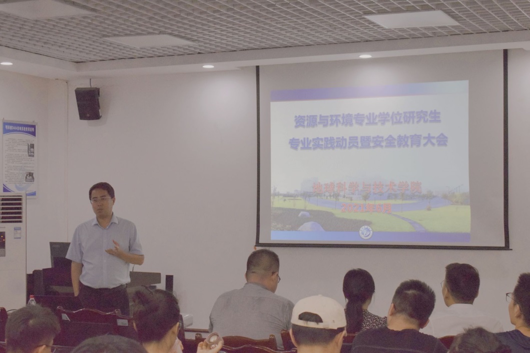 為更好的踐行教育部和學校關于專業學位研究生專業實踐的規定,提高研究生的專業實踐能力,6月28日晚上19:30,地科院資源與環境專業學位研究生2021年度專業實踐動員暨安全教育大會在明辨樓D404順利召開。大會由劉宏副院長主持,院研究生辦公室副主任王春華、研究生專職輔導員歐陽田及各專業方向研究生導師代表郭亮、楊巍、張昆等老師出席會議,即將開展專業實踐的我院2020級資源與環境專業全體碩士研究生參加了本次大會。