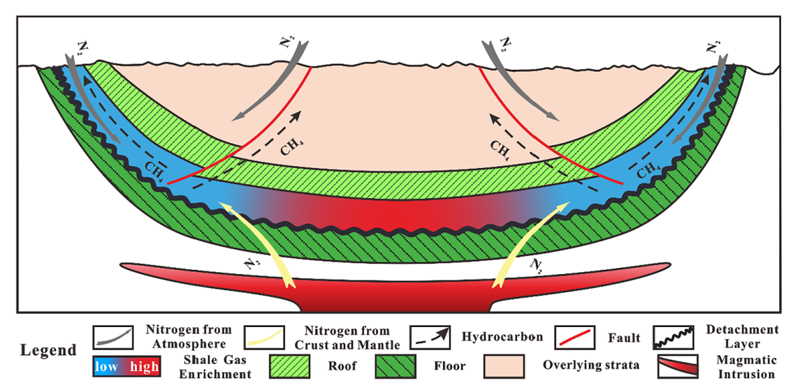 復雜向斜背景頁巖氣藏遭受破壞、出現高氮低烴現象的模型