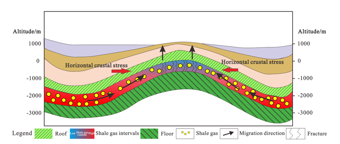 簡單背斜背景頁巖氣富集模型