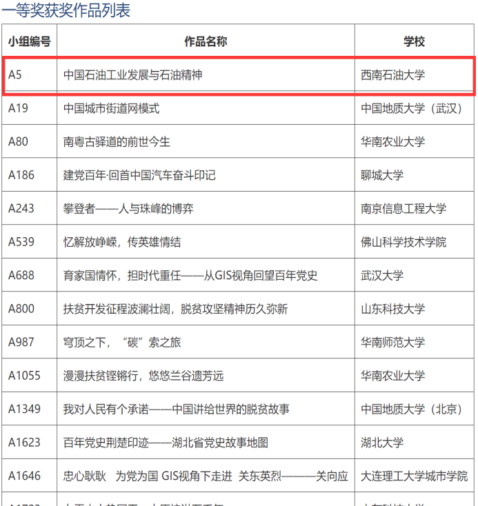 “易智瑞杯中國大學生GIS軟件開發競賽”地圖故事組一等獎獲獎名單