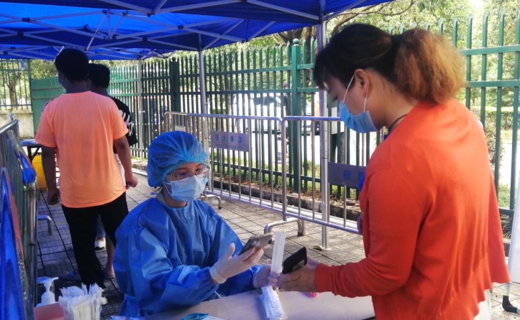近日,成都市錦江區疫情非常嚴重,許多小區實施封閉式管理,“人不出區,錯峰取物”。我院教工黨員張蕎老師參加了小區業委會組織的志愿者行動,協助社區和醫務人員完成每日核酸檢測。