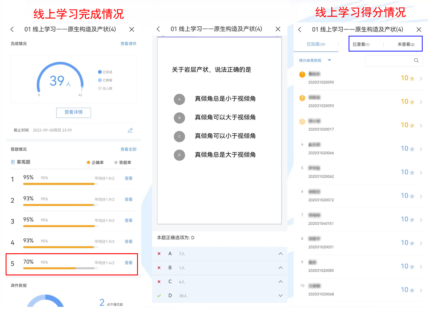 2022年9月開學之際,疫情形勢較為嚴峻,為了最大限度保障教學工作的順利進行,按照學校總體防疫工作要求,《構造地質學》課程組在地科院、教學辦和教研室的大力支持下,商討并確定了本課程的教學方式,采用了線上自主學習+雨課堂—騰訊會議聯動直播相結合的方式開展教學,保障了課程教學的正常運行,并取得了良好的教學效果。
