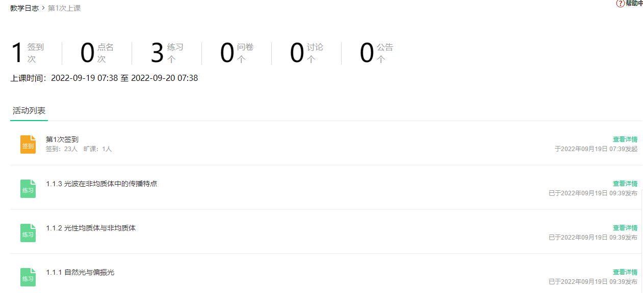 “晶體光學(xué)”課程已在中國大學(xué)(MOOC)平臺上打造出四川省線上一流課程,并進行第9次開課。學(xué)生根據(jù)自己的需求,靈活使用碎片化時間、反復(fù)多次的進行線上自主學(xué)習(xí),深刻理解本課程中的基本理論知識和基本概念,課程網(wǎng)站中也設(shè)置有隨堂測驗,以檢驗和評估學(xué)生自學(xué)效果(圖2)。