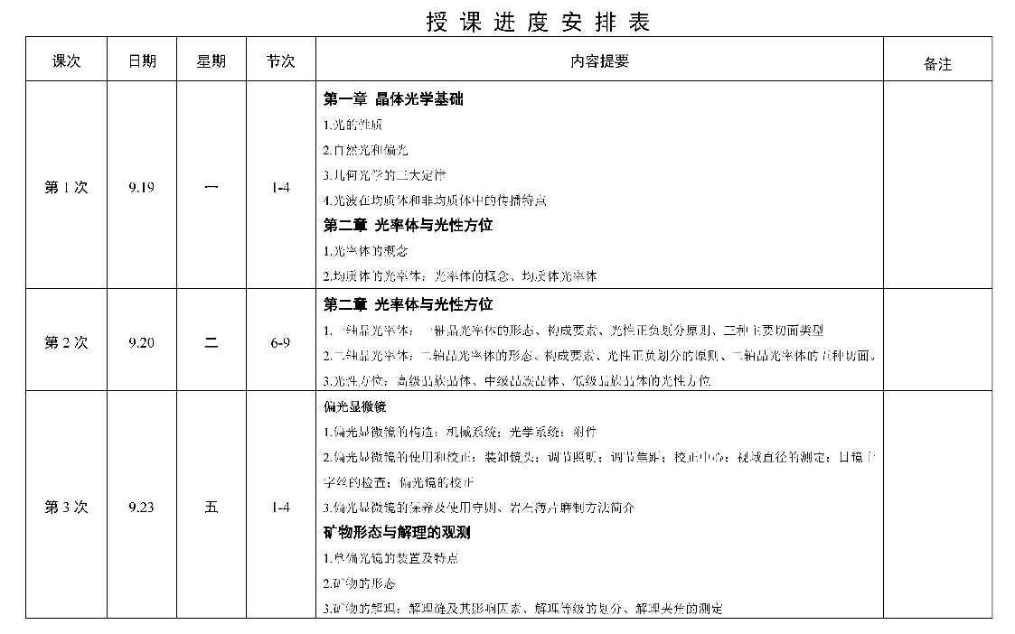 2022年秋季學(xué)期受疫情影響,學(xué)生尚未返校,《晶體光學(xué)》課程開展線上教學(xué)。該課程共36學(xué)時,其中理論4學(xué)時+實驗32學(xué)時。由于課程要借助偏光顯微鏡進行實驗,線上實際操作難度大。課程組教師共同商討,對授課計劃進行了調(diào)整。先完成理論及實驗過程中理論的線上教學(xué)工作,待學(xué)生返校后,線下集中進行顯微鏡實操,并與后續(xù)內(nèi)容前后銜接。新的授課計劃如圖1所示。