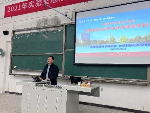 2023年3月2日,由地理信息科學教研室、地信科研團隊黨支部聯(lián)合舉辦的地理信息科學專業(yè)全年級學習大會在明辨樓C205隆重召開。本次會議緊跟學校和學院高質量發(fā)展步伐 ,以新姿態(tài)新氣象新作為一體推進地信專業(yè)教學、科研、人才、就業(yè)等同向發(fā)力,在服務經(jīng)濟社會發(fā)展特別是川渝經(jīng)濟圈高質量發(fā)展中師生共同擔任務作貢獻。