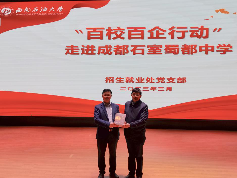 為進一步強化與中學間的交流互動,更好地服務中學師生,吸引更多優質生源,3月28日下午,地球科學與技術學院副院長范翔宇、西南石油大學招生就業處副處長肖虎等一行赴成都石室蜀都中學開展能源安全科普講座。