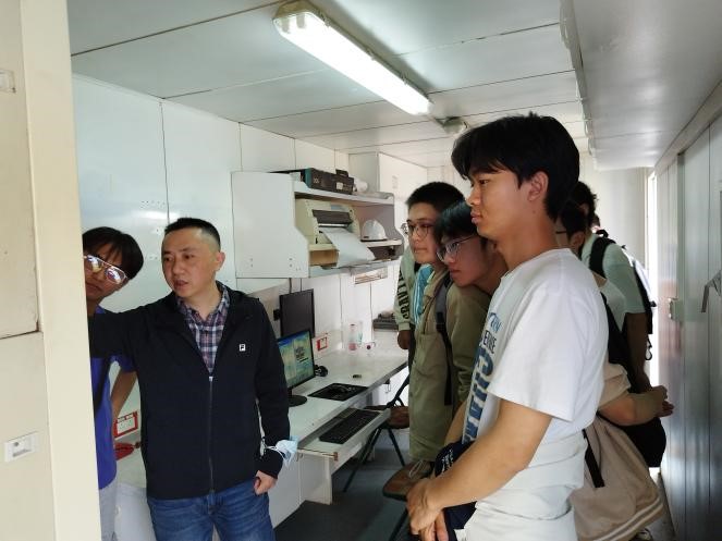 在結束了6、7兩節課的課堂教學之后,黃老師又帶著同學們來到西南石油大學的實習實訓基地,首先給同學們介紹了鉆井井場中綜合錄井儀各類傳感器的安裝位置和信號傳輸途徑,然后分組給同學們詳細介紹并實際操作演示了SK-2000綜合錄井儀的具體工作原理和流程。