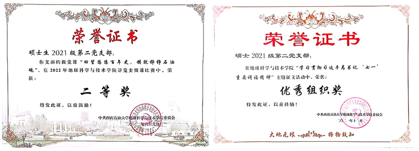 碩士2021級黨支部現有12名正式黨員和6名預備黨員,積極響應院黨委號召,認真做好每一件小事,積極發揮好學生黨員的先鋒模范作用。支部自建立以來,學生黨員結合所學專業優勢,自覺參加各類志愿服務活動,堅持在基層志愿活動中服務群眾,加強黨性修養,發揮黨員先鋒模范作用。在學院黨委組織的各類比賽中積極準備,斬獲各類獎項。黨的二十大勝利召開以來,支部通過集中學習、個人自學、撰寫心得、理論宣講、主題黨日等形式,深入學習貫徹黨的二十大精神。支部成員鄭皓月參加全國高校地球科學院(系)學生骨干論壇。