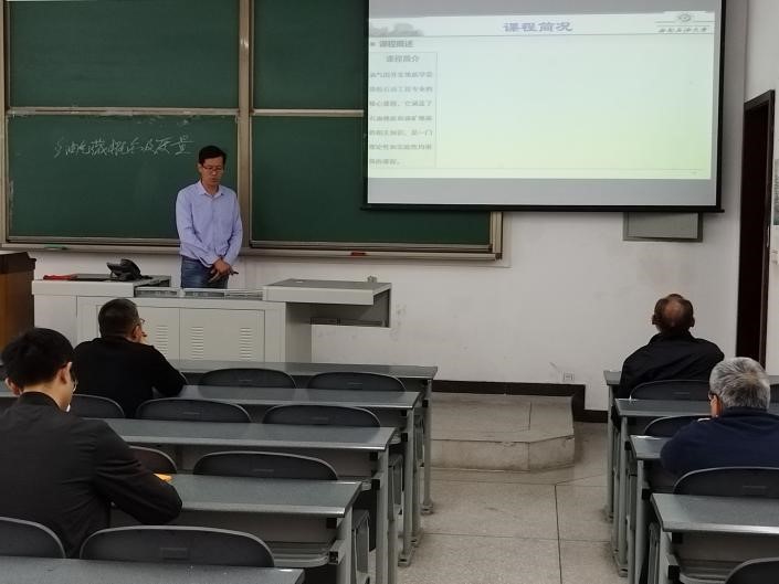 本次試講活動分教師說課、試講、點評交流3個環(huán)節(jié)。劉金華首先進(jìn)行了5分鐘的說課,介紹了《油氣田開發(fā)地質(zhì)學(xué)》課程概況,然后試講課程中的“油氣藏概念及度量”內(nèi)容。試講完成后,廖明光教授、蔣裕強教授以及李斌、渠芳等老師從教學(xué)內(nèi)容、教學(xué)組織、語言教態(tài)、教學(xué)特色、多媒體美化等方面對試講進(jìn)行了點評和交流,并對板書、PPT制作等方面提出了改進(jìn)建議。