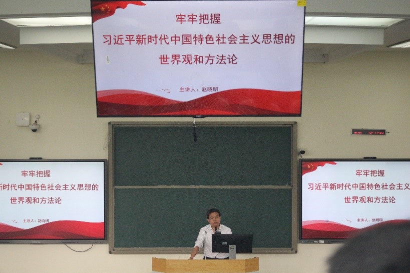 地科院黨委副書記(主持工作)趙曉明教授在大會上作了“牢牢把握習(xí)近平新時代中國特色社會主義思想的世界觀和方法論”為主題的專題黨課。趙書記就習(xí)近平新時代中國特色社會主義思想的世界觀展開了講解,我們就是要必須堅持人民至上,必須堅持自信自立,必須堅持守正創(chuàng)新,必須堅持問題導(dǎo)向,必須堅持系統(tǒng)觀念,必須堅持胸懷天下。“六個必須堅持”既有各自定位,又有相互聯(lián)系的辯證統(tǒng)一關(guān)系,是一個相互貫通的有機統(tǒng)一體。趙曉明還對習(xí)近平新時代中國特色社會主義思想的方法論進行了細(xì)致講解,講述了“七個思維”。趙曉明運用通俗易懂的語言,結(jié)合平時生活和科研中的案例,生動地向大家解說了習(xí)近平新時代中國特色社會主義思想的世界觀和方法論中的豐富內(nèi)涵,并強調(diào)全體畢業(yè)生同學(xué)要對其進行深刻領(lǐng)悟、準(zhǔn)確把握。