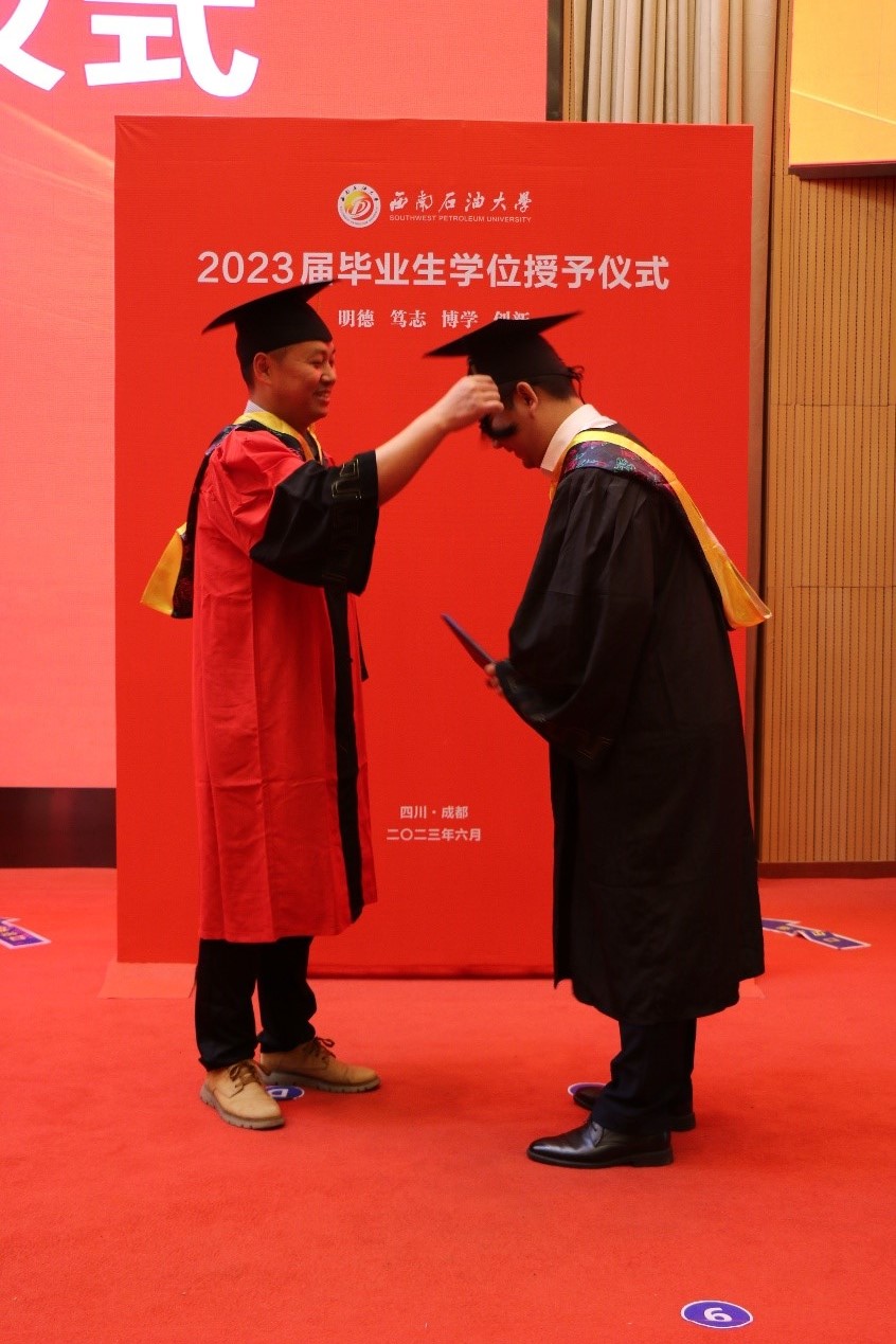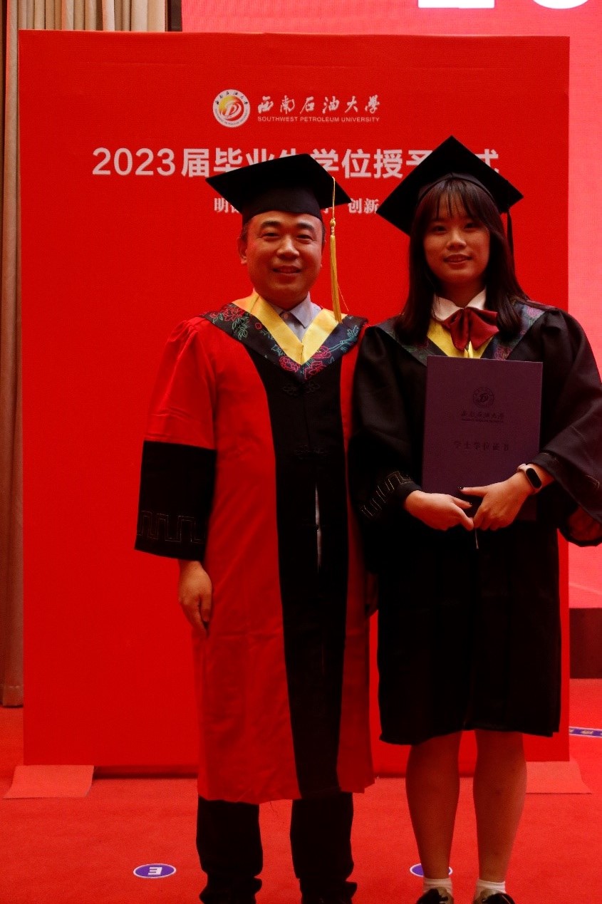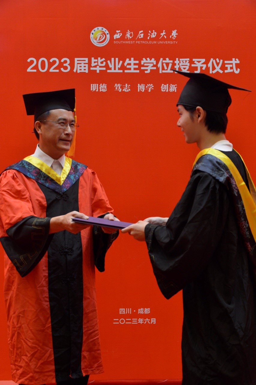 資源勘查工程2023屆本科畢業生曾偉說道:“很感謝學院給了即將畢業的我們一個如此難忘的回憶,授位儀式不僅僅是畢業離校的一環更是開啟我們人生新篇章的慶典,也是漫漫人生路中我們與西南石油大學地球科學與技術學院最寶貴的回憶。”他們會珍藏與老師的珍貴合影,會銘記學院老師的囑托,以石大地科學子身份匯入人海、各奔東西,并以石大地科學子身份共同精彩!