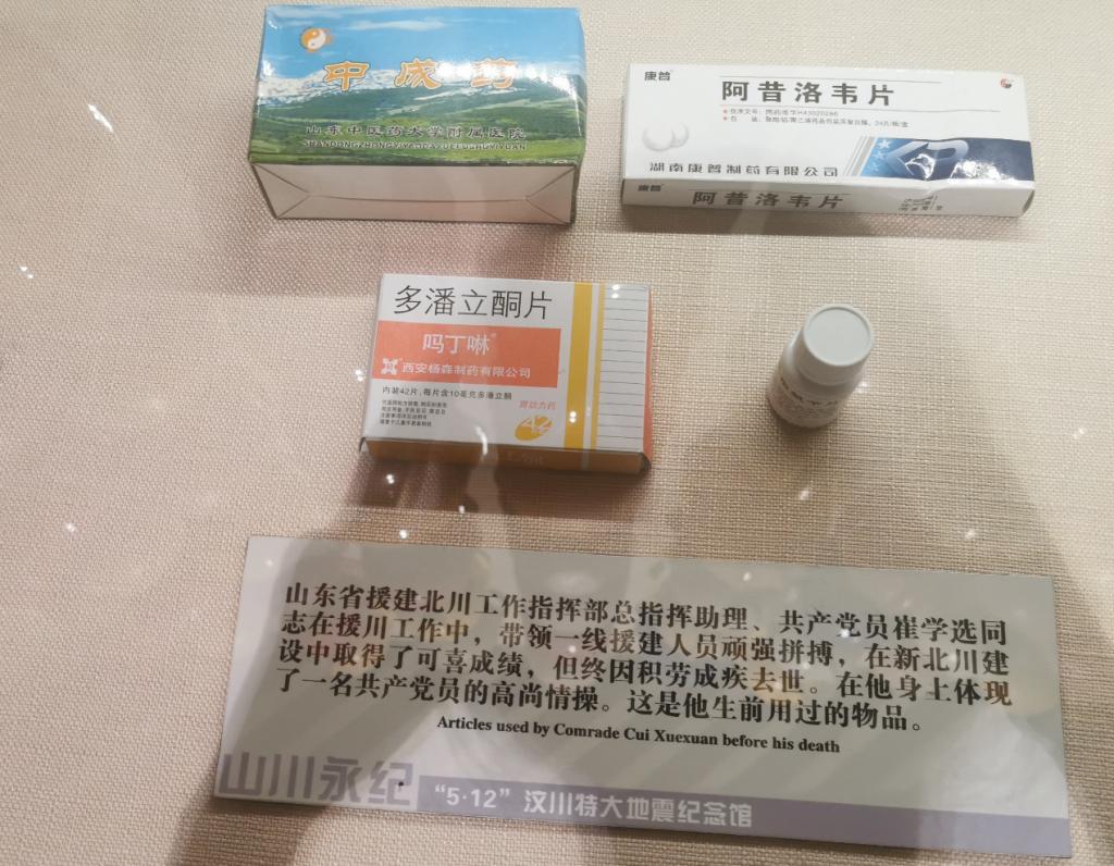 優(yōu)秀援建黨員干部崔學(xué)選生前用過的藥品