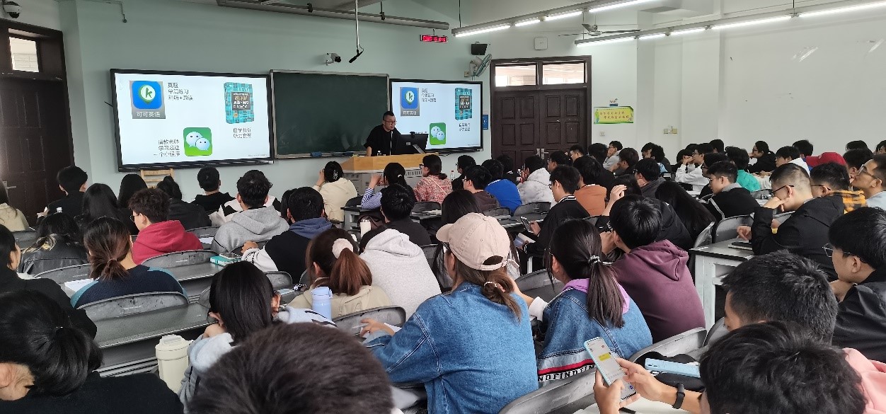 開班儀式后,新東方老師作了《英語六級聽力》專題講座,從聽力的指導原則、做題步驟、分類練習、答題技巧等方面解讀了英語六級聽力的學習方法和備考準備,并耐心回答了同學們對于聽力學習提出的問題與困惑。