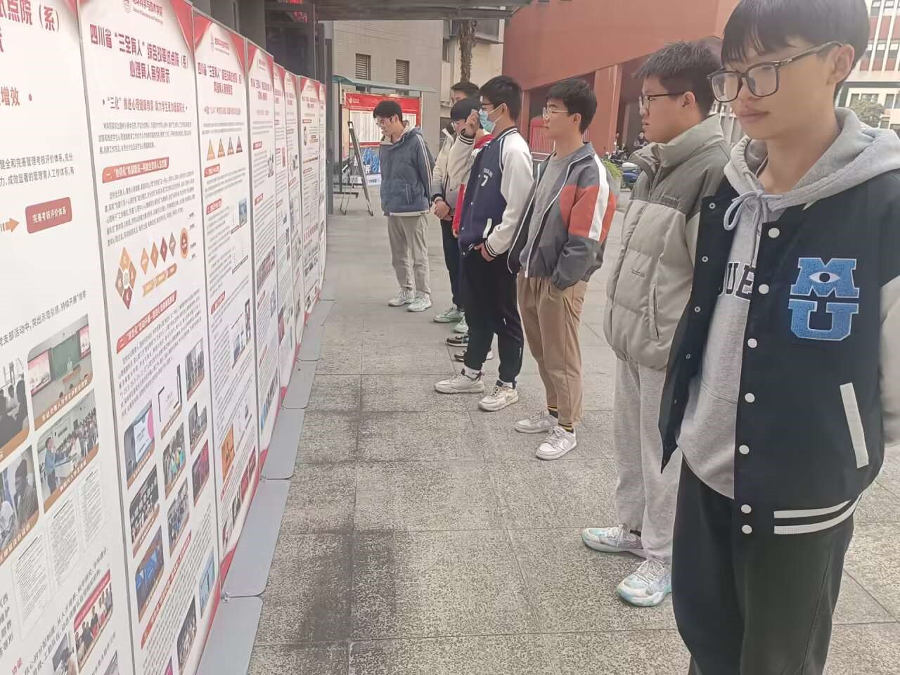 11月22日以來,地科院在明辨樓A區大廳舉辦《構建“三全育人”大格局 唱響“立德樹人”主旋律》四川省“三全育人”綜合改革試點院(系)建設成果,全面宣傳展示了基礎地質課程思政一體化探索,開展“科研+”行動積極推進科研育人;在行走中上好實踐育人“大思政課”;弘揚地質文化、鑄就地質之魂;構建“123N”網絡育人模式、凝聚網絡青春正能量;“三化”推進心理健康教育、助力學生更加健康陽光;“三個強化”讓管理育人提質增效;打好服務組合拳、走出育人新路子;踐行“三四五”工作法、實現發展型資助;“逐夢研途”黨建賦能微社區等課程、科研、實踐、文化、網絡、心理、管理、服務、資助、組織等方面的典型做法和育人成果,反映了地科院在育人體系創新、育人活動開展、育人效能提升、育人品牌建設、工作隊伍賦能等方面探索的足跡,多層次、多維度展示了將“三全育人”工作融入人才培養全過程的生動實踐?;顒游藦V大地科師生參觀學習,激發了地科師生對學院“三全育人”成效的熱烈討論,營造了“全員、全過程、全方位”育人的良好氛圍。