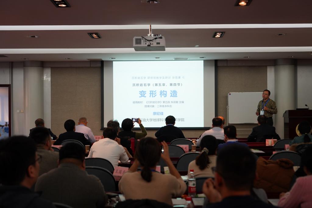 中國科學院院士、中國地質大學(北京)王成善教授作了題為“沉積巖石學與沉積學 — —門具有魅力的學科”的線上視頻報告,對沉積學學科發展提出要求和期待。湖北省教學名師、長江大學毛寧波教授,北京市教學名師、中國礦業大學(北京)邵龍義教授,河南理工大學鄭德順教授,國家級教學名師、中國石油大學(北京)朱筱敏教授分別從一流課程建設、課程思政建設、教學技能提升等方面進行了經驗交流和分享。此外,來自中國石油大學(北京)、中國石油大學(華東)、中國地質大學(北京)、西南石油大學四所高校的6位教師代表,選擇《沉積巖石學》課程內容,模擬正式教學過程進行了示范課教學。