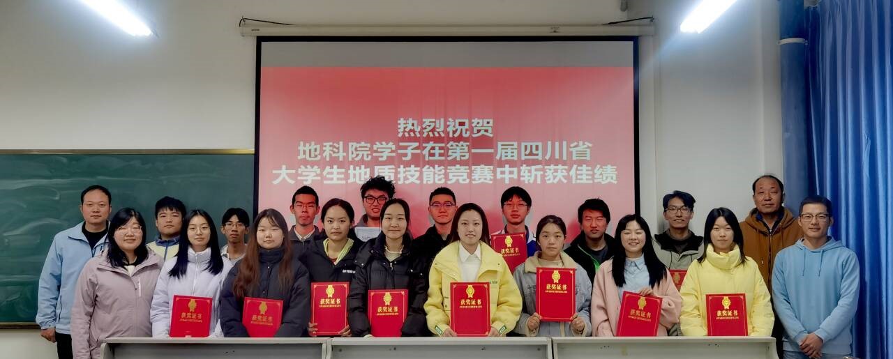 11月3日至5日,由四川省教育廳主辦,成都理工大學和四川省地球科學類專業教學指導委員會聯合承辦的第一屆四川省大學生地質技能競賽在成都順利舉行。我院學子獲特等獎2項,一等獎12項,二等獎1項,我校獲團體一等獎、優秀組織獎,共17個獎項。我院教師陳曦、范存輝、付敬浩、葛玉輝、廖紀佳、王浩錚、王玨博、王挽瓊、張錦讓、張云峰、鄭波和朱玉娣全程參與競賽輔導工作。