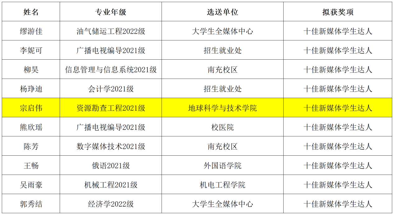 2023年十佳新媒體學(xué)生達(dá)人獲獎(jiǎng)名單