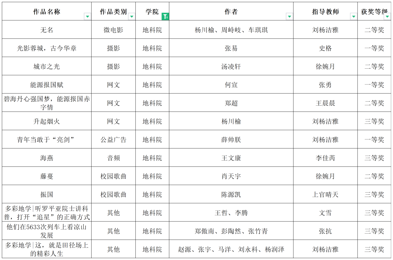 2023年“大學(xué)生網(wǎng)絡(luò)文化節(jié)”網(wǎng)絡(luò)文化作品征集活動(dòng)地科院獲獎(jiǎng)名單