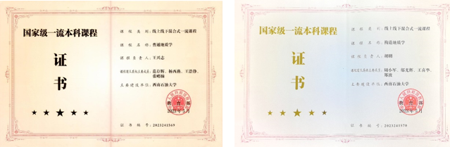 教育部、省教育廳為我院一流本科課程頒發(fā)證書