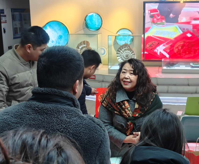 衡書記一行在明辨樓A區(qū)巖石展廳,遇到學院正在開展“祥龍獻瑞,春聯(lián)送?!被顒?,參與到同學們的活動之中。看到一幅幅學生自己構(gòu)思、自己書寫的春聯(lián),衡書記拿出手機拍照留作紀念,并表示:“同學們寫的春聯(lián)很好,不僅字寫的好看,而且內(nèi)容各有特色,有的與學科特色相關(guān),有的表達了對來年科研成果的期許,很不錯”。衡書記非常關(guān)心學生,詢問他們留校學習生活有沒有什么困難、家是什么地方的、什么時候返鄉(xiāng)回家,預祝同學們新春快樂、心想事成??吹胶鈺浫绱撕吞@可親,同學們話匣子都打開了,暢聊留校期間學習生活的事情,同學們還請衡書記指導自己書寫“福”字,場面十分溫馨,衡書記一行與同學們合影留念,為地科院師生送去祝福。地質(zhì)學2022級碩士研究生袁滿說到:學院有這樣溫暖的活動,學校領(lǐng)導還在假期來看望我們,為我們送上新春祝福,真的太幸福了。