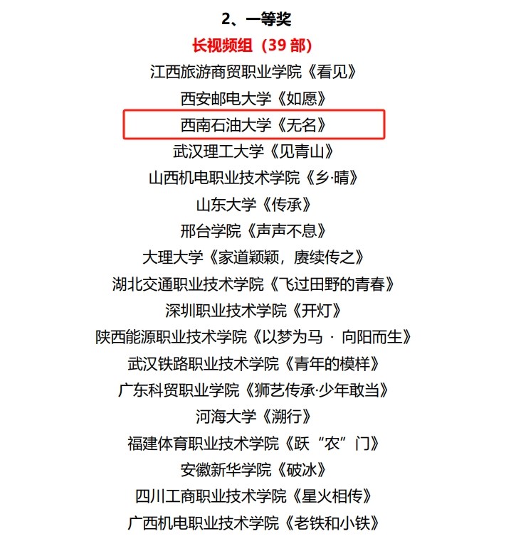微電影《無名》獲獎(jiǎng)公示