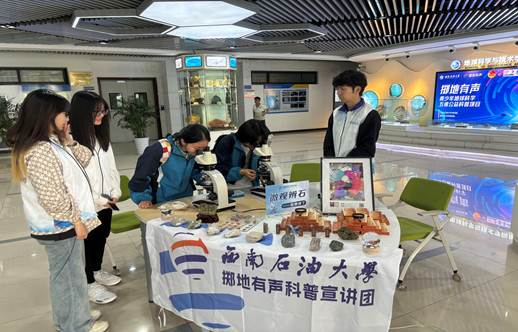 “哇,巖石在顯微鏡下竟然能看到這么多種顏色!”“兩年后我要考取西南石油大學(xué)地科院”中學(xué)們將地科院科普志愿者與顯微鏡圍在中間激動(dòng)地說到。4月8日下午,地科院“擲地有聲”科普?qǐng)F(tuán)隊(duì)與GIS協(xié)會(huì)、知源愛心協(xié)會(huì)聯(lián)合舉辦“走進(jìn)地學(xué)世界,點(diǎn)燃科學(xué)夢(mèng)想”校園開放日科普活動(dòng),來自新都一中的高一學(xué)生,參觀了地質(zhì)巖石展廳、觀看了地學(xué)科普視頻,體驗(yàn)了科普實(shí)踐活動(dòng)。