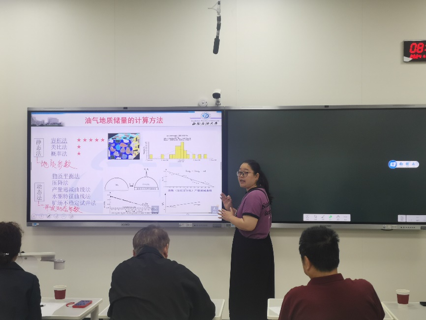 | 韋明洋老師授課《地質學基礎》 | 付永紅老師授課《油氣田開發地質學》 |