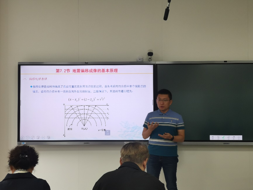 | 劉金華老師授課《油氣田開發地質學》 | 岳玉波老師授課《地震資料數字處理方法》 |