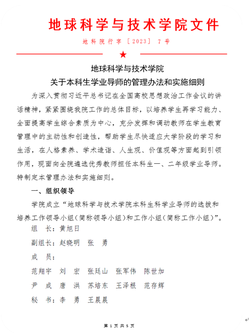 地球科學與技術學院關于本科生學業導師的管理辦法和實施細則