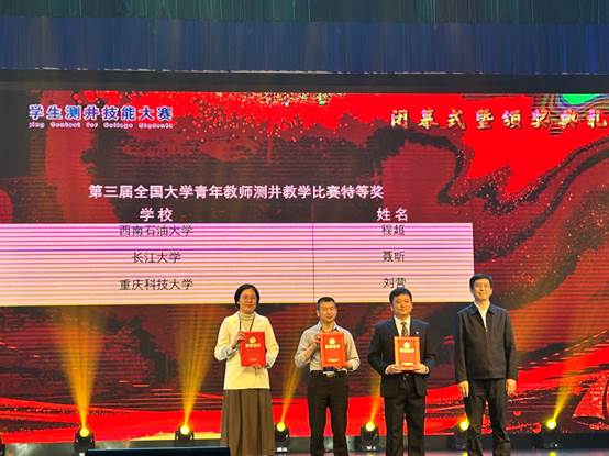大賽賽程包括測井資料處理解釋技能操作比賽、理論考試、知識競賽等環(huán)節(jié),并同期舉辦全國大學青年教師測井教學比賽。來自17所高校的測井專業(yè)師生同臺競技,經(jīng)過激烈的角逐,我院研究生代表隊蟬聯(lián)研究生組唯一全國團體特等獎(參賽隊員:王爭妍、任昱霏、成紅秀、羅長琴),兩只本科生代表隊(I隊參賽隊員:楊慶青、萬天豪、曾云鑫、王磊;II隊參賽隊員:蹇雪梅、程夢園、鄧沖、曾佳麗)均獲得全國團體二等獎。此外,本科生II隊獲得最佳報告獎,王爭妍獲得最佳知識競賽獎,羅長琴獲得最佳理論知識獎。測井教研室程超副教授和巫振觀分別獲青年教師測井教學比賽研究生教學組特等獎和本科生教學組一等獎。