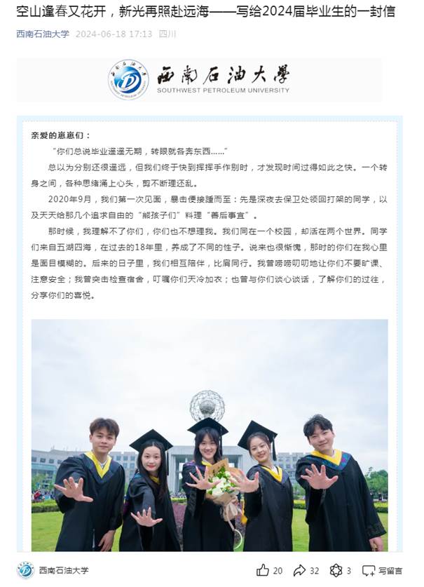 空山逢春又花開,新光再照赴遠(yuǎn)海——寫給2024屆畢業(yè)生的一封信