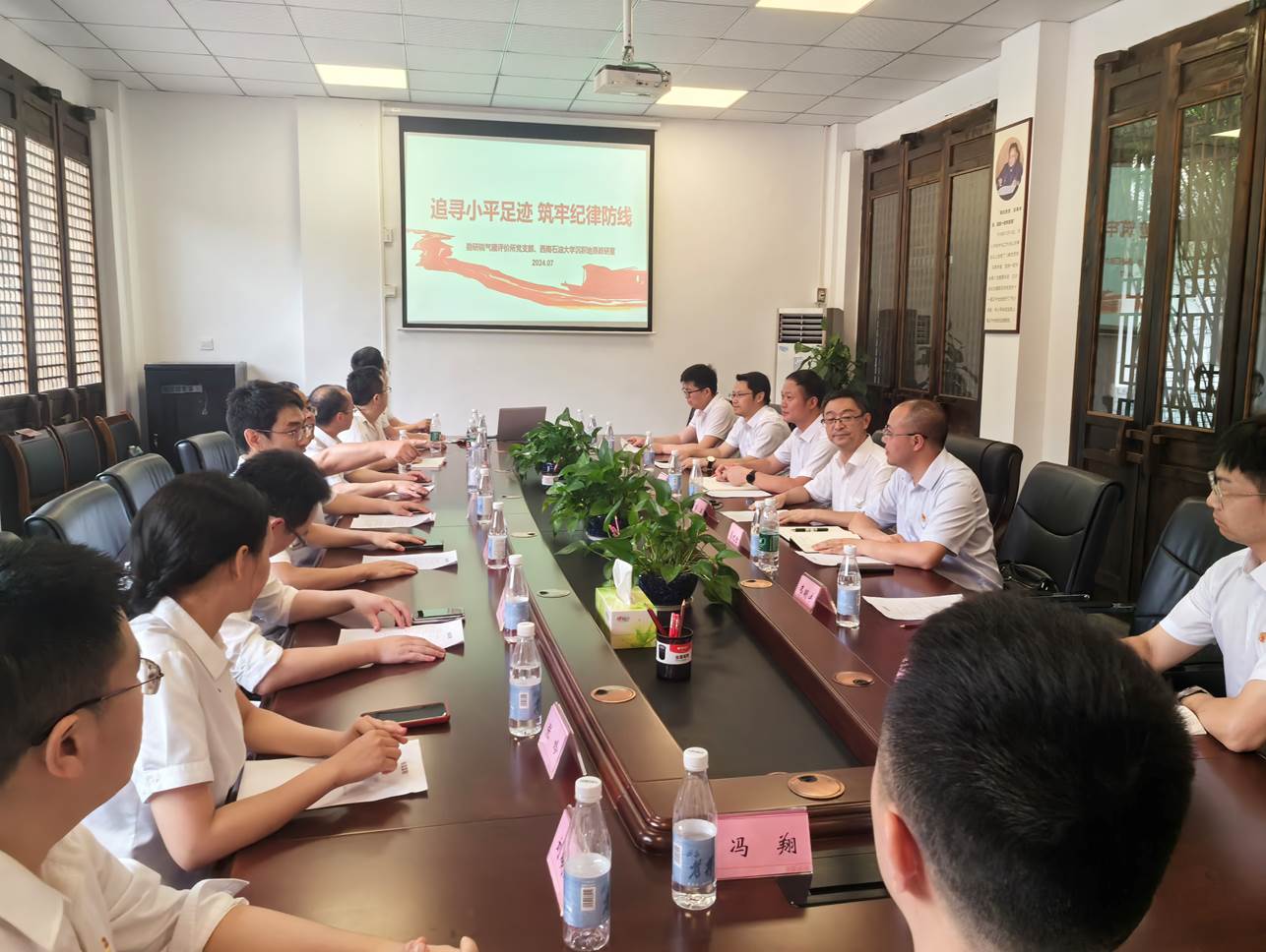 為深入學(xué)習(xí)貫徹習(xí)近平新時(shí)代中國(guó)特色社會(huì)主義思想,凝聚黨建合力,增強(qiáng)黨員干部政治定力、紀(jì)律定力、道德定力、抵腐定力,推動(dòng)資源共享,將西南石油大學(xué)地科院與西南油氣田分公司勘探開(kāi)發(fā)研究院創(chuàng)建的“黨建+院企合作”新模式走深、走實(shí),實(shí)現(xiàn)院企產(chǎn)學(xué)研融合發(fā)展,7月30日,地科院沉積地質(zhì)教研室黨支部聯(lián)合西南油氣田分公司勘探開(kāi)發(fā)研究院氣藏所黨支部開(kāi)展“追尋小平足跡 筑牢紀(jì)律防線”主題黨日活動(dòng)。沉積地質(zhì)教研室黨支部書(shū)記廖紀(jì)佳、主任張?jiān)品寮芭碥姟ⅠT明友、張喜、韋明洋等教師,氣藏評(píng)價(jià)所支部書(shū)記徐偉、所長(zhǎng)楊東凡等20余位黨員代表參加活動(dòng),同時(shí)邀請(qǐng)勘研院機(jī)關(guān)第二黨支部部分黨員及入黨積極分子參加活動(dòng)。
