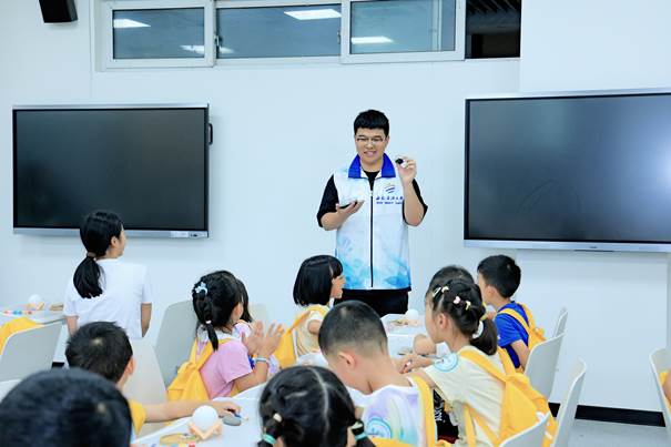 志愿者帶領青少年開展了“探索宇宙,制作星球模型”“巖石作畫,彩繪天然原石”等科學實踐體驗活動,通過互動問答的形式,向大家講解趣味科學實踐的流程與原理,激發孩子們對科學的探索興趣,隨后帶動孩子們一起制作多彩星球模型,親手彩繪天然礦物巖石,讓每個小朋友都有屬于自己的個性化巖石標本,在互動中感知地球科學的無窮魅力。