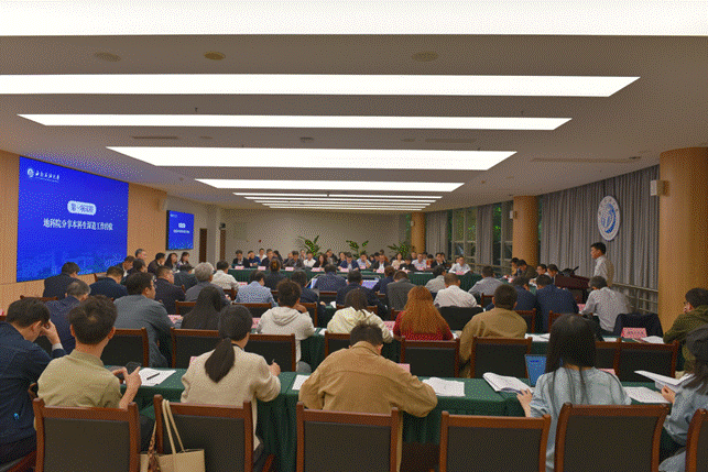 地科院院長黃旭日在會上作經驗交流,全面介紹了學院“12345”深造模式,即“一個中心、兩輪驅動、三維助力、四類分層、五方聯動”,“12345”深造模式為人才培養提供更強大的助推力,收獲更高的效能、更多更好的成果。2024屆畢業生深造率達53.13%,比2023屆的47.68%提高近4個百分點,其中98%的學生在國內“雙一流”以上高校深造、地質主干專業留在本校深造比例達79%。相關工作得到中國教育網、中國新聞網、中國共產黨新聞網、學習強國、四川教育發布等省級以上主流媒體的宣傳報道,產生了良好的社會反響。