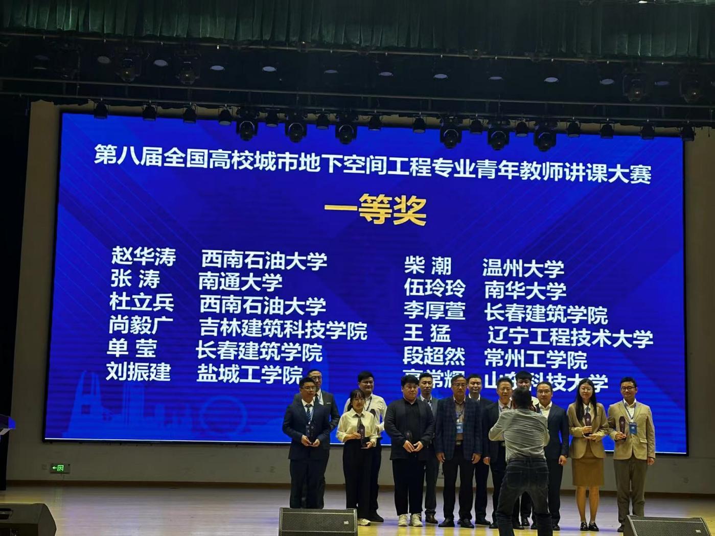 我院巖土與地下工程教研室趙華濤老師、杜立兵老師參加了本次青年教師講課大賽。兩位青年教師教學內容完整、教學組織流暢、語言教態得體、教學風趣深刻,受到評委一致好評,在高手如云的51位青年講課教師中脫穎而出,雙雙榮獲全國一等獎,充分展現了我院青年教師的卓越教學風采及專業水平。