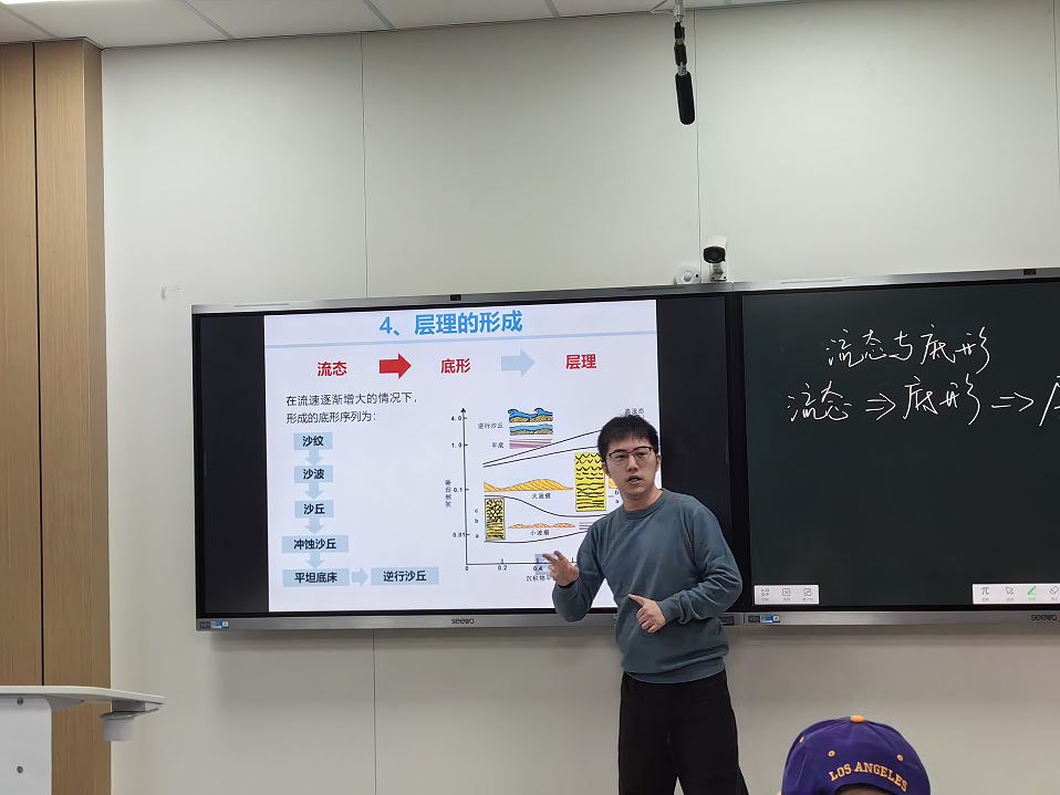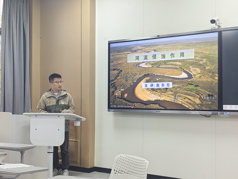 地科院副院長趙虎作賽前動員,介紹了青年教師課堂教學比賽組織的背景和意義,指出本次教學比賽,既是搭建學院青年教師展示教學、互相交流的教學情境,也是為全國大學青年教師地質課程教學比賽選拔參賽教師。