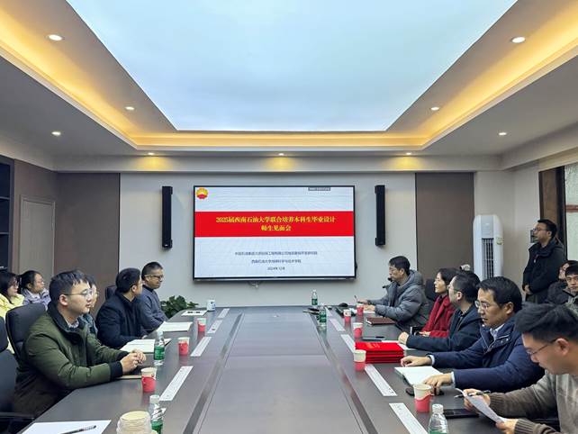 12月13日,地科院師生赴中國石油川慶鉆探工程公司地質勘探開發研究院,參加校企聯合指導畢業設計師生見面會。地科院副院長劉宏,資勘專業建設負責人唐洪,油氣地質教研室主任楊輝廷、副主任葛家旺,教學辦公室主任張俊峰,畢業班輔導員劉楊潔雅以及14名資勘專業應屆畢業生參加本次會議。