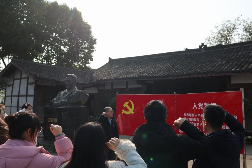 參觀南充校區(qū)后,師生集體前往羅瑞卿紀(jì)念館,瞻仰羅瑞卿將軍的風(fēng)采,了解羅瑞卿將軍的革命生涯。在羅瑞卿故居,全體黨員重溫了入黨誓詞。