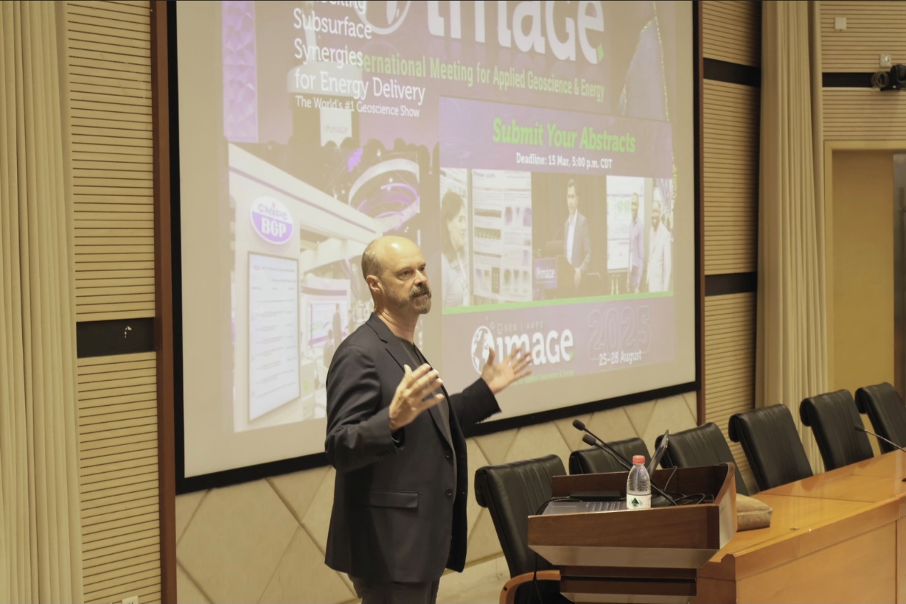 2025年3月1日上午,國際勘探地球物理學(xué)家學(xué)會(SEG)主席John Eastwood先生應(yīng)邀訪問西南石油大學(xué),并為師生帶來了一場題為《Geophysics - our Common Bond(地球物理學(xué):我們共同的紐帶)》的學(xué)術(shù)報(bào)告。本次會議由西南石油大學(xué)地球科學(xué)與技術(shù)學(xué)院、西南石油大學(xué)SEG學(xué)生分會等聯(lián)合主辦,旨在搭建國際學(xué)術(shù)交流平臺,推動地球物理領(lǐng)域的前沿探索。
