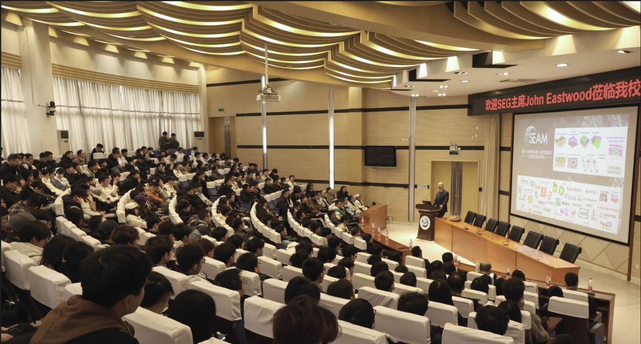 面對師生熱情的學(xué)術(shù)探討,John先生展望了應(yīng)用地球物理學(xué)的未來,認(rèn)為這一學(xué)科仍將在全球能源和資源領(lǐng)域發(fā)揮關(guān)鍵作用。他鼓勵在場師生對未來職業(yè)發(fā)展充滿信心,并熱情邀請大家加入SEG,在應(yīng)用地球物理學(xué)的廣闊天地中發(fā)光發(fā)熱,為學(xué)科發(fā)展和社會進(jìn)步貢獻(xiàn)力量。