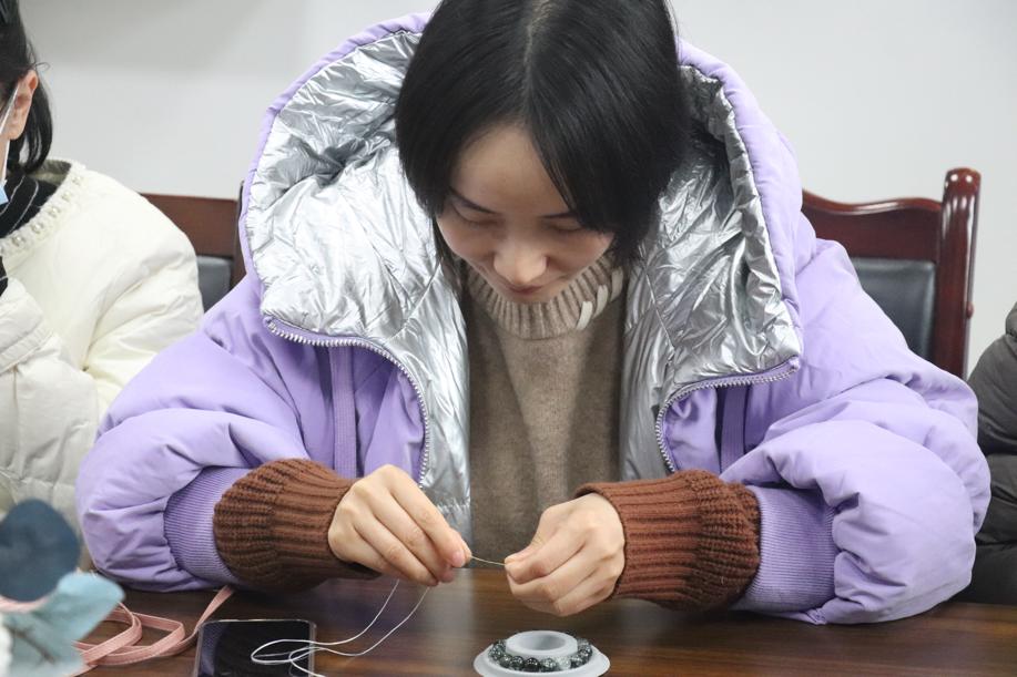 各位老師創(chuàng)新搭配,挑選心儀的水晶,動手編織屬于自己的獨特手串。活動現(xiàn)場氛圍熱烈溫馨,老師們積極交流,相互學(xué)習(xí),將帶有美好寓意的水晶和自己真摯的愿景編織成一串串手鏈,或贈與家人,或取悅自己。大家相互展示作品,相互欣賞,拍照留念,留下美好瞬間。學(xué)院還為各位女教職工贈送了艾草錘寓意著健康和幸福。