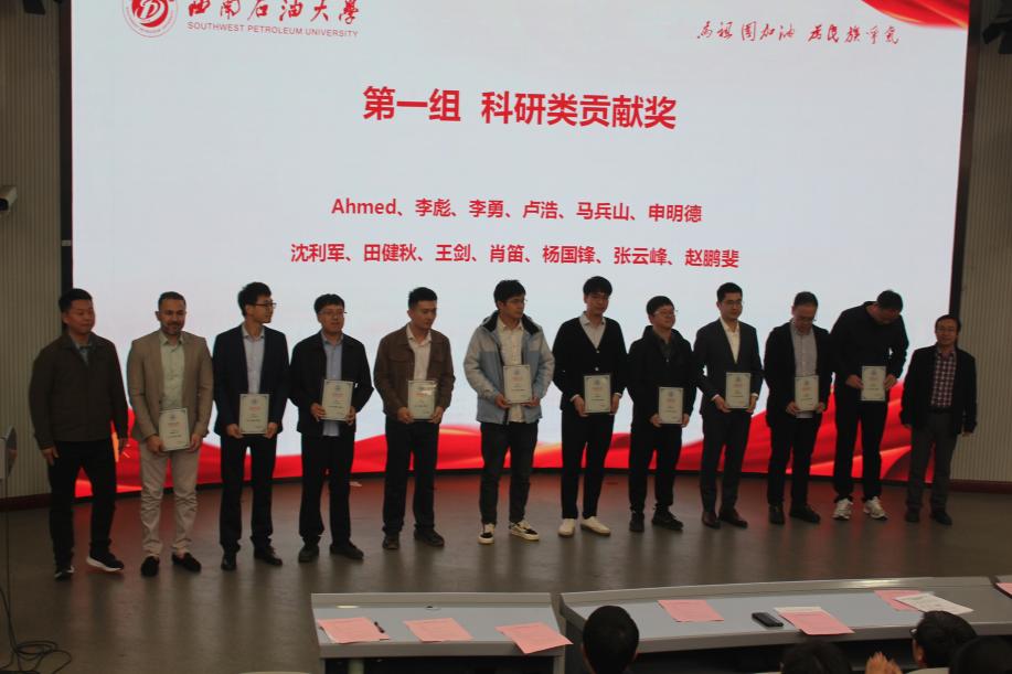 黃旭日宣讀了《地科院2024年度優秀個人和先進集體表彰文件》,向獲獎者表達熱烈的祝賀和衷心的感謝。他號召全院教職工以建設“世界一流學科”為目標,堅持教學科研與人才培養并重,繼續秉承“大地無垠,格物致知”的院訓,在新征程中再創輝煌。學院領導班子成員、四川省優秀黨務工作者付修根教授、四川省學術與技術帶頭人唐洪明教授為獲獎的個人和集體代表頒發榮譽證書。