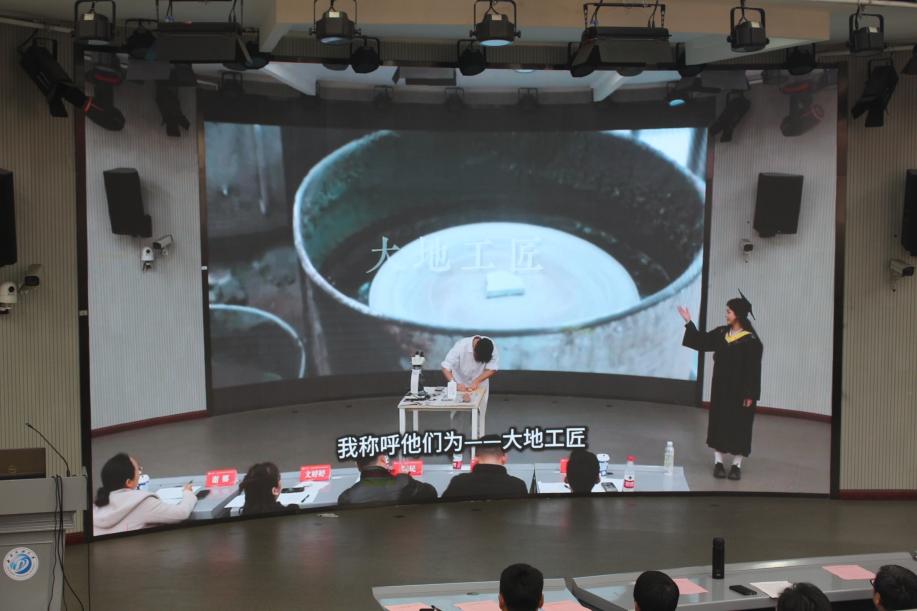 大會在學生自編自導自演的情景劇《大地工匠》中拉開序幕,講述了地科院退休教師、巖芯制片師吳建平40年如一日將將巖芯一點點打磨成“薄如蟬翼”的高水準的巖片為尋油找氣打下基礎。吳建平老師“執著專注、一絲不茍、精益求精、追求卓越”的精神風貌,生動展現了地科院教師“腳踏實地、愛崗敬業”的故事,深刻詮釋了新時代地質人的使命擔當。