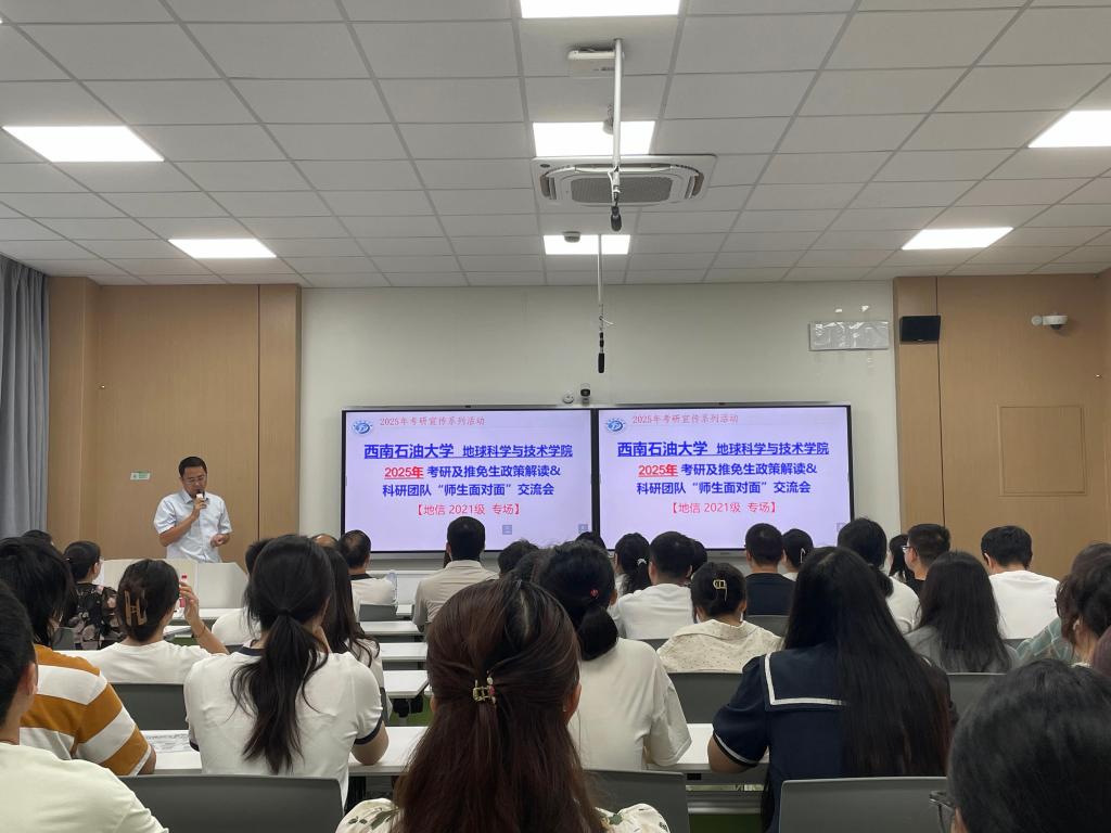 在考研備考前期的關鍵階段,學院第一時間開展分專業(yè)考研動員大會,地科院副院長劉宏帶領各個科研團隊的老師們走進教室“傳經(jīng)送寶”,為同學們提供全方位的指導和建議。“動員會上,老師們不僅系統(tǒng)梳理了我們專業(yè)各科研團隊的研究特色,還現(xiàn)場為同學們‘把脈問診’,正是在這樣的精準指導下,我明確了研究方向。”2021級勘查技術與工程專業(yè)的黃國蘋回憶道。得益于這次動員會的“牽線搭橋”,他順利找到了心儀的導師,提前進入科研團隊學習。如今,這位曾經(jīng)的“考研新手”已蛻變?yōu)閷I(yè)能手,與團隊成員一起斬獲了第九屆全國大學生測井技能大賽石油類高校本科生組一等獎的好成績。