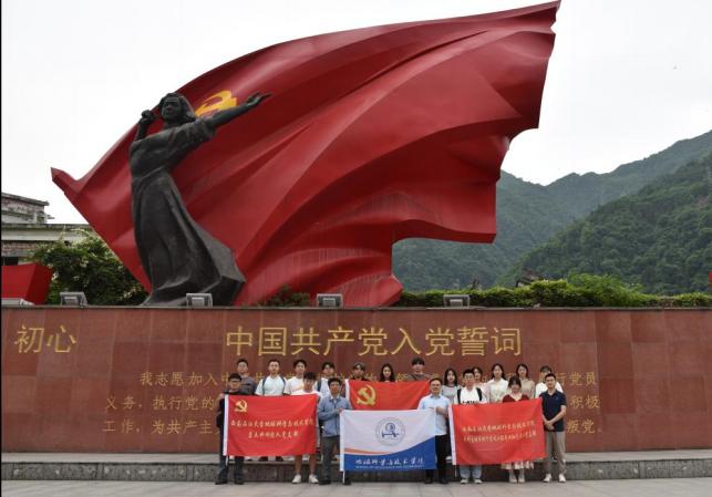 師生一行在“初心?母親”雕塑下合影重溫入黨誓詞