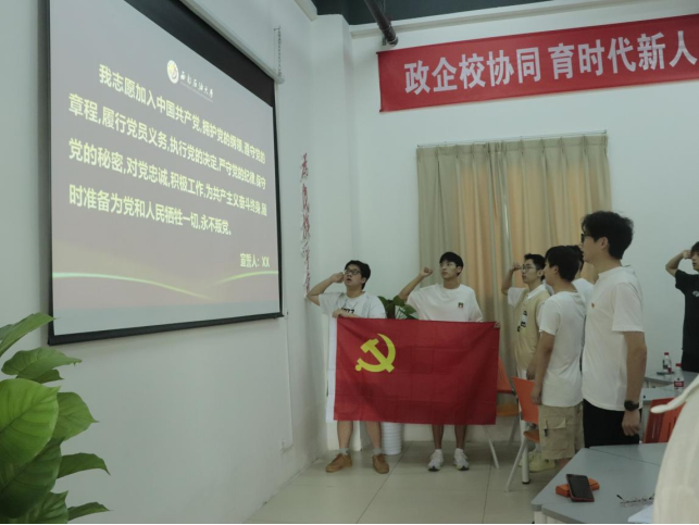全體畢業(yè)生黨員面對黨旗,重溫入黨誓詞。鏗鏘有力的誓詞回蕩在活動室,進(jìn)一步堅(jiān)定了畢業(yè)生黨員為共產(chǎn)主義事業(yè)奮斗終生的決心和信念。