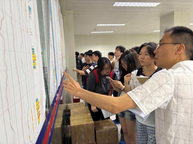 吳豐老師(右一)為學生進行現(xiàn)場資料分析解讀